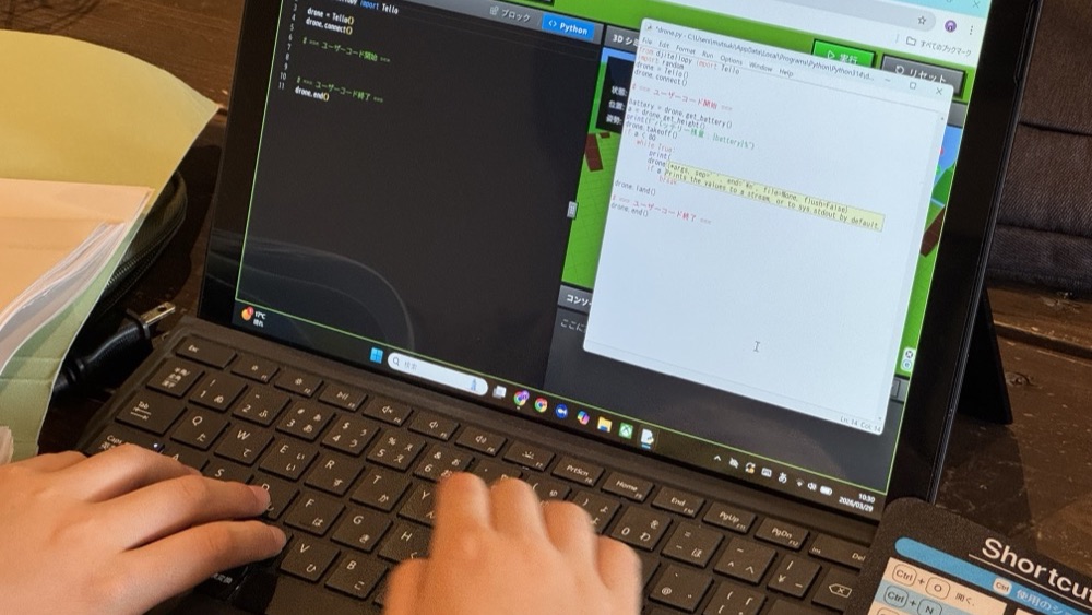 作ったプログラムでドローンが実際に動くからわかりやすく楽しく学べます。達成感が次の意欲につながります。